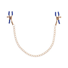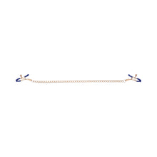 Dare to bare it all and add a touch of thrill to your play with the Cougar Nipple Clamps. These elegant clamps feature a luxurious gold chain with the word Cougar written in cursive between them, embodying both style and playfulness. Featuring adjustable tension, these clamps are perfect for exploring new sensations. The sultry blue hue adds a fierce edge, ensuring every moment is as stylish as it is stimulating. Dual sided adjustable tension rubber tipped nipple clamps Enticing cursive lettering spelling cougar 16.5 in. in length Materials: 50% Iron alloy, 45% Zinc alloy, 5% PVC