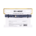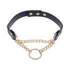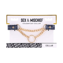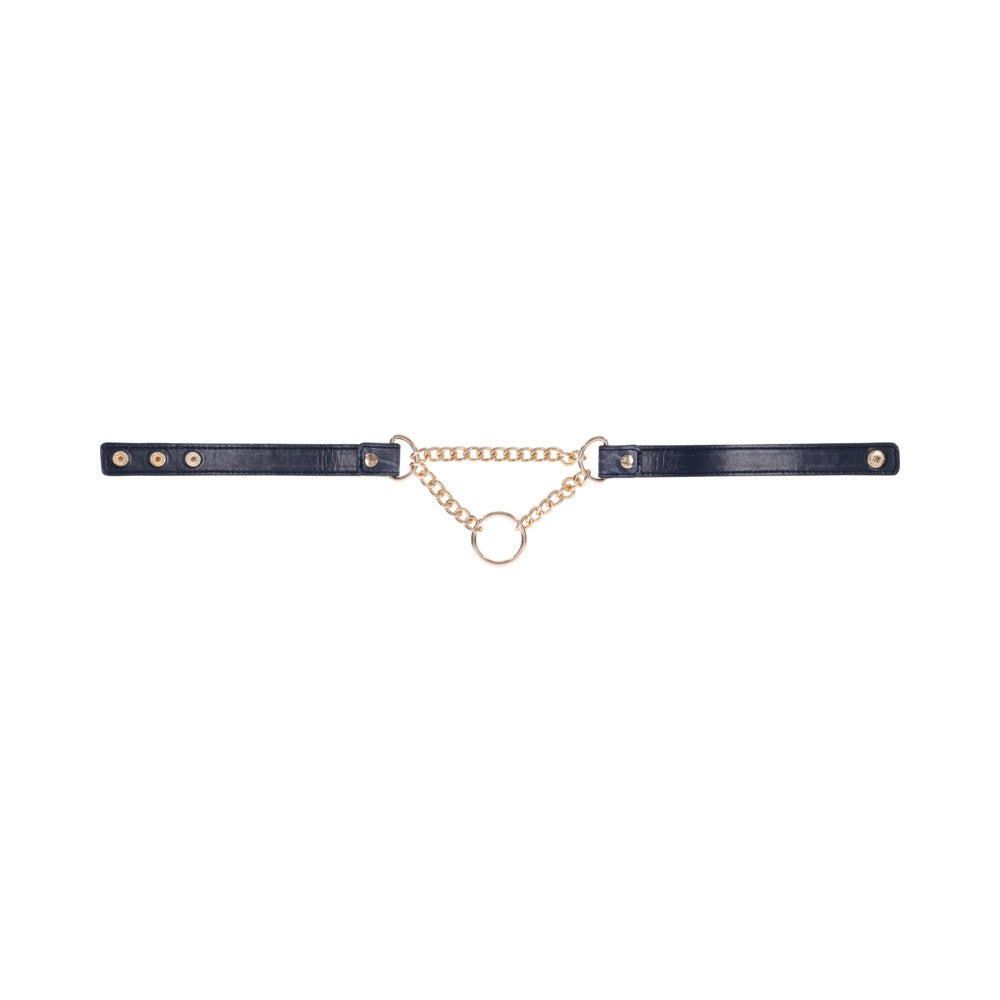 This elegant piece, crafted from animal-printed faux leather, is adorned with subtle gold hardware, making it a stylish accessory for any occasion. The gold ring that hangs from your neck can be used for playful tugs or to attach a leash, adding an extra layer of excitement to your encounters. Wear it as a bold statement or a discreet symbol of your wild side, and let your inner feline shine. Leaves a paw impression Fixed chain for faux-choking play Gold hardware chain and 1.25 in. ring Fits necks 15 in. to 17 in.