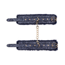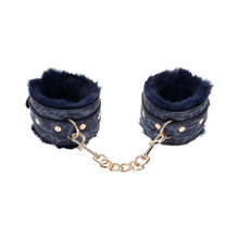 Embrace the allure of playful restraint with the Cougar Fur Handcuffs. Luxuriously lined with a rich blue faux fur and accented with gleaming gold hardware, these handcuffs are designed for sophisticated seduction. Ideal for adventurous play, they offer both comfort and style, ensuring your intimate moments are unforgettable. Faux fur inner lined cuffs with faux leather Nickel-free gold-plated hardware with 5.5 in. chain 9 in. cuffs with adjustability buckle Includes two handcuffs & connecting chain Materials: 50% Polyurethane, 30% Polyester, 15% Iron, 5% Zinc Alloy